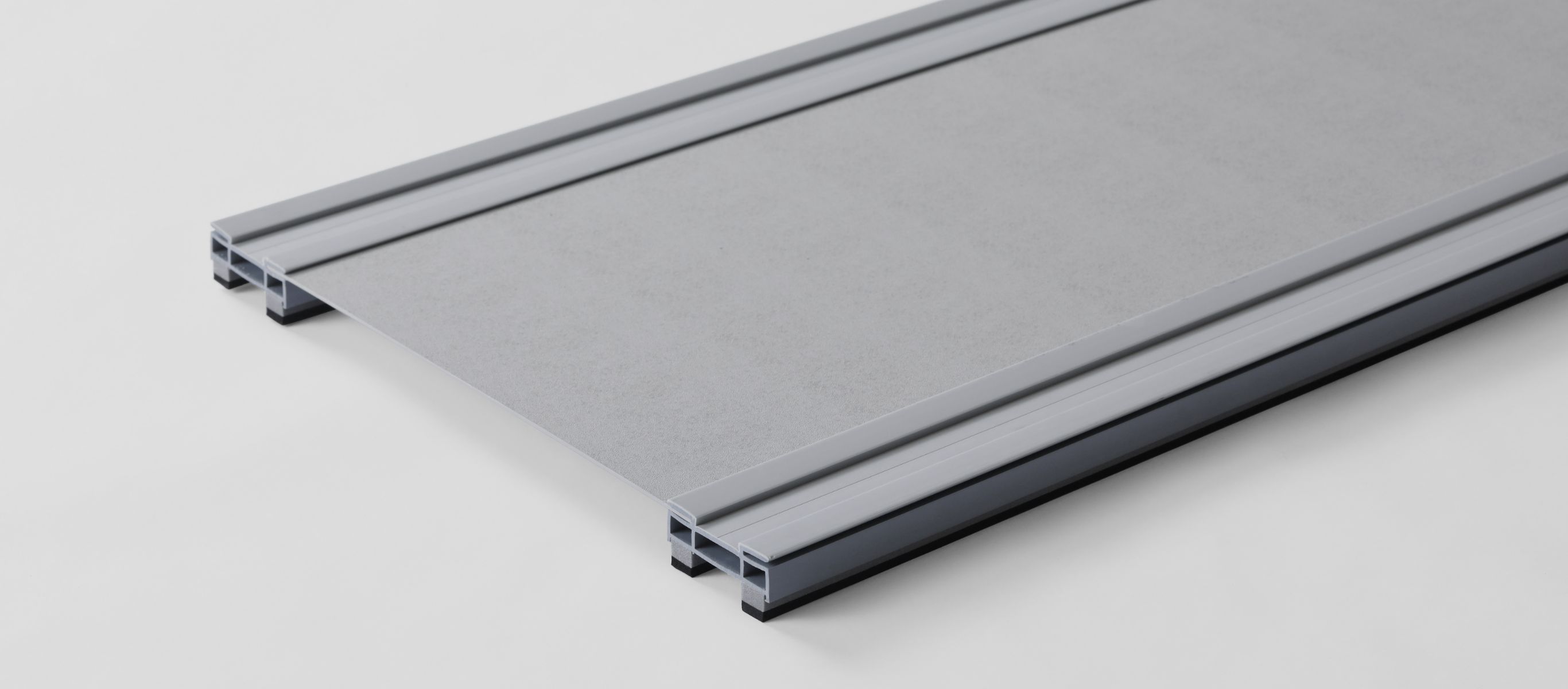 軽量かつ高剛性な不燃材を用い、耐水・耐衝撃・耐火・耐食・耐候性能を兼ね備えた面導水樋。アルミ積層複合材。