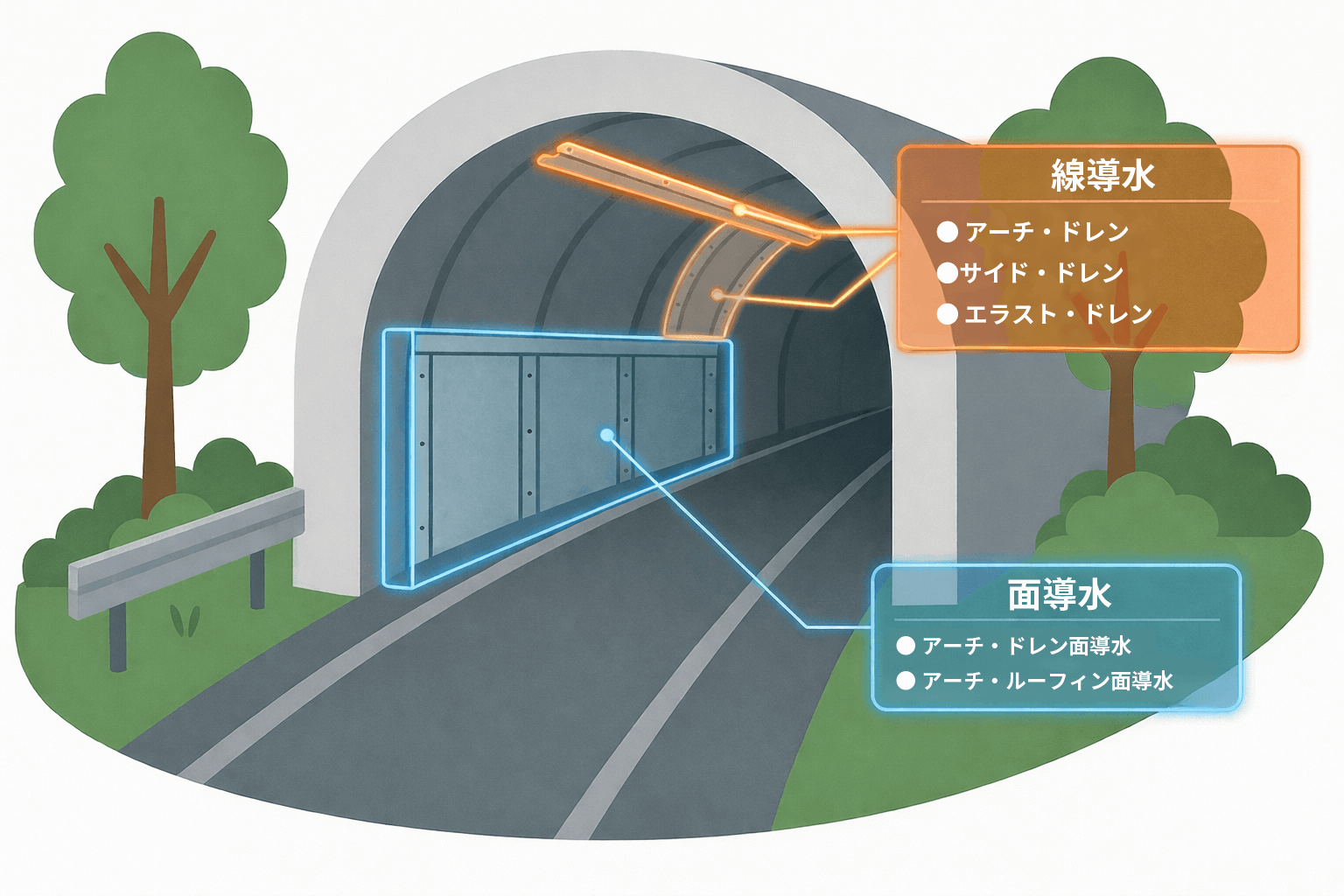 トンネル内の漏水対策には、水の入り方や発生箇所に応じた“最適な導水材の選定”が欠かせません。
