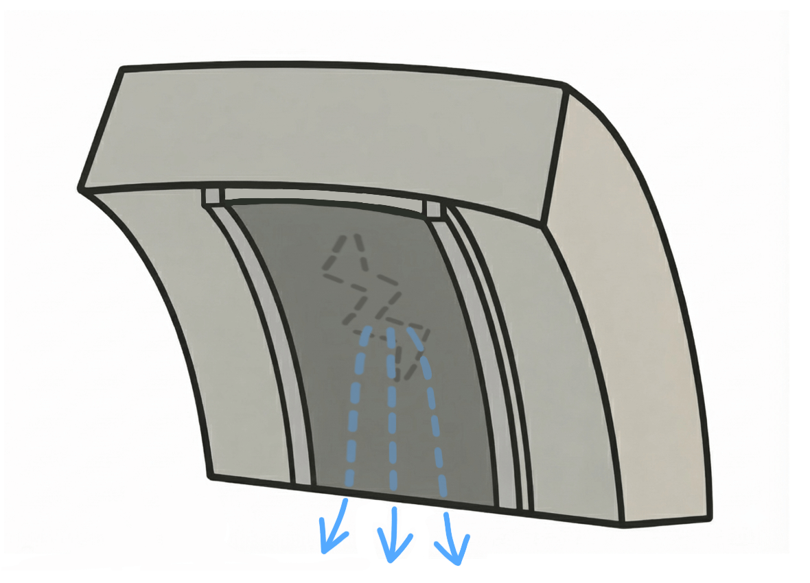面導水樋とは、壁面・床面・覆工コンクリート・防水層など、“広い範囲を流れる水”を面全体で受け止め、排水方向へ面で誘導する導水材です。