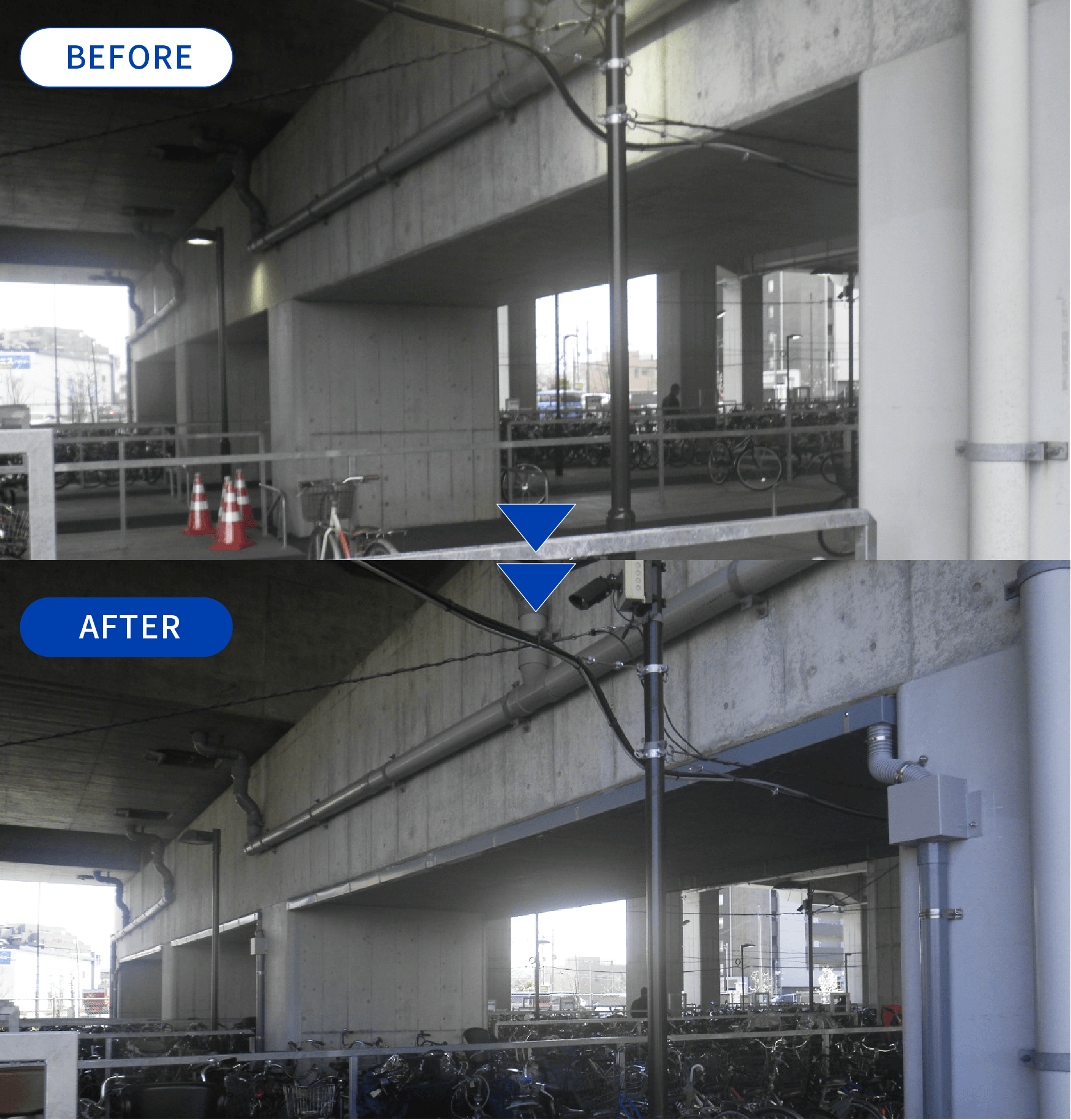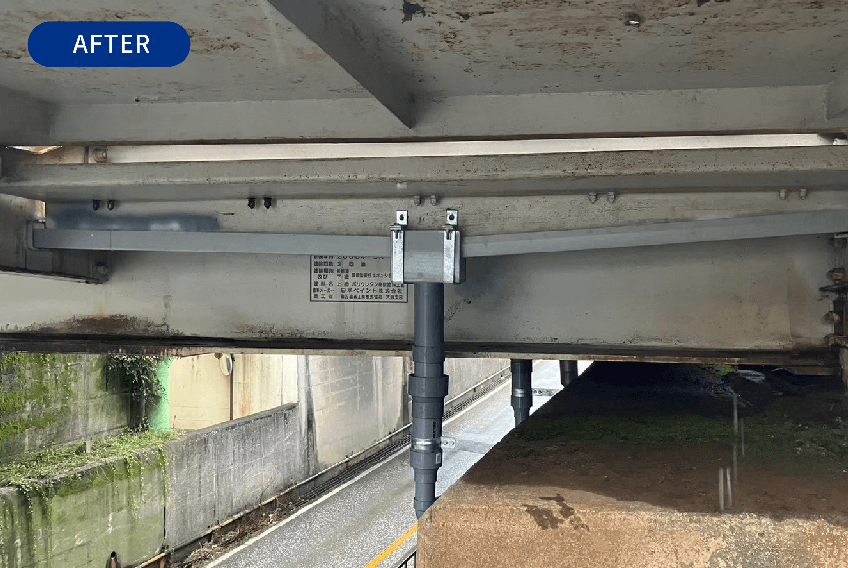 梁部に導水樋を設置し、適切な位置へ排水することで、自転車への漏水被害を防止。高架下利用者が安心して使用できる環境を確保しました。