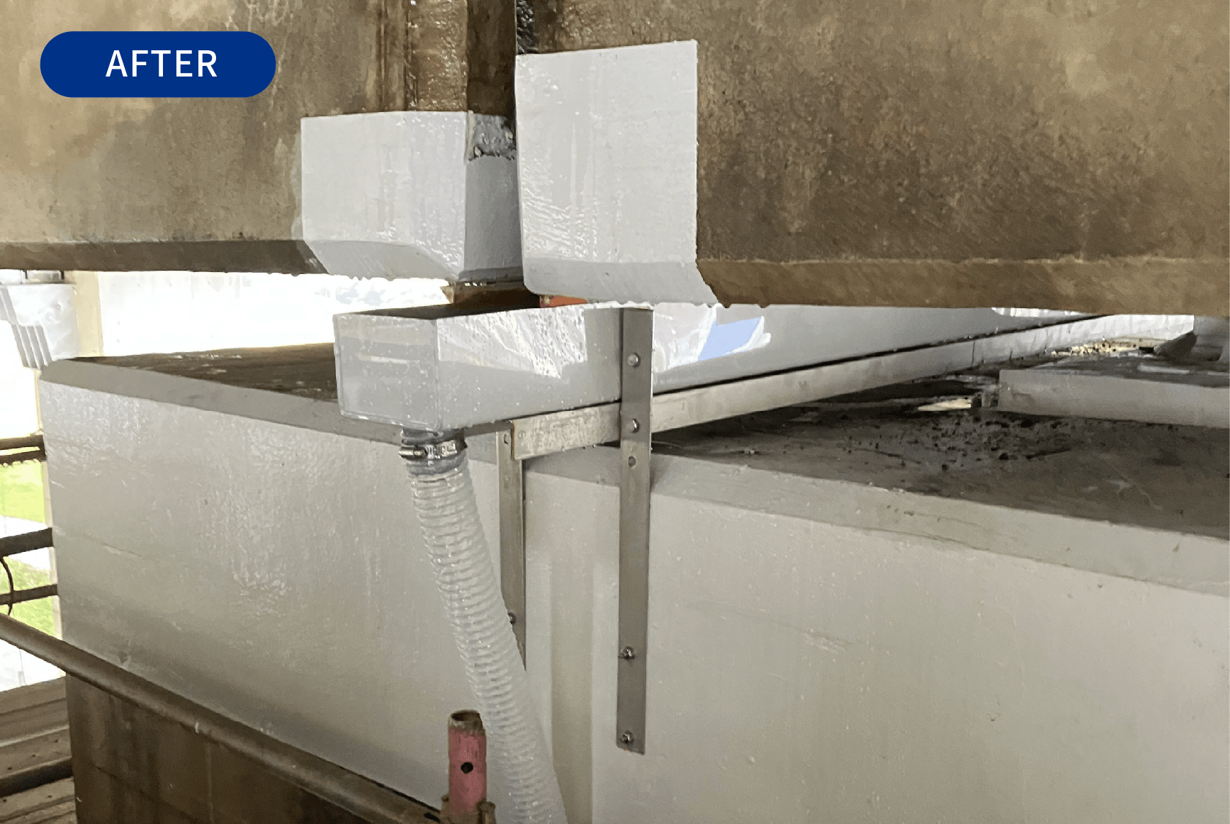 耐腐食性に優れた排水樋へ更新したことで、長期的な耐久性が向上し、維持管理負担の軽減につながりました。加えて、応用技術の活用により、現場適合性および施工性の向上も実現しました。