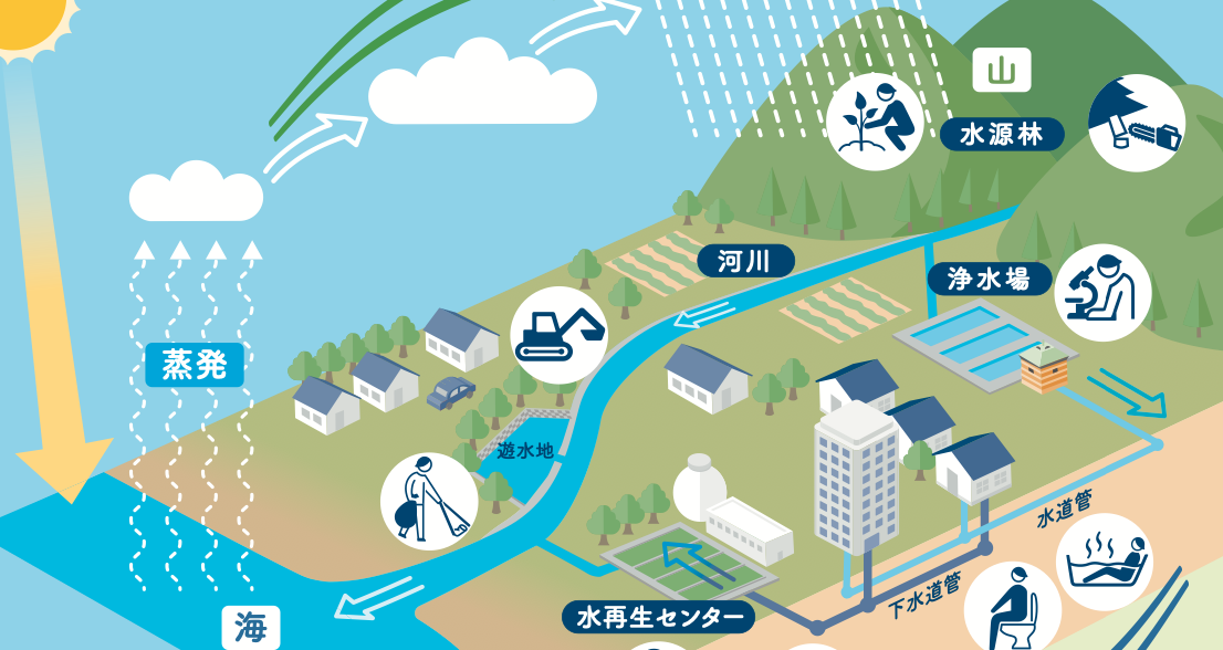 水循環という水資源を生む自然環境のシステムや、循環させることでの課題などをご紹介しました。水資源を守るために、自分たち一人ひとりができることはわずかですが、社会全体に広がれば大きな力となります。未来に向けて美しい水資源を守っていくために、水を守る大切さを考えましょう。