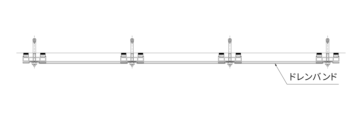 鉄道トンネルに使用。鉄道トンネルでは、トンネル火災時の垂れ下がり防止のため、ドレンバンドを併用しています。