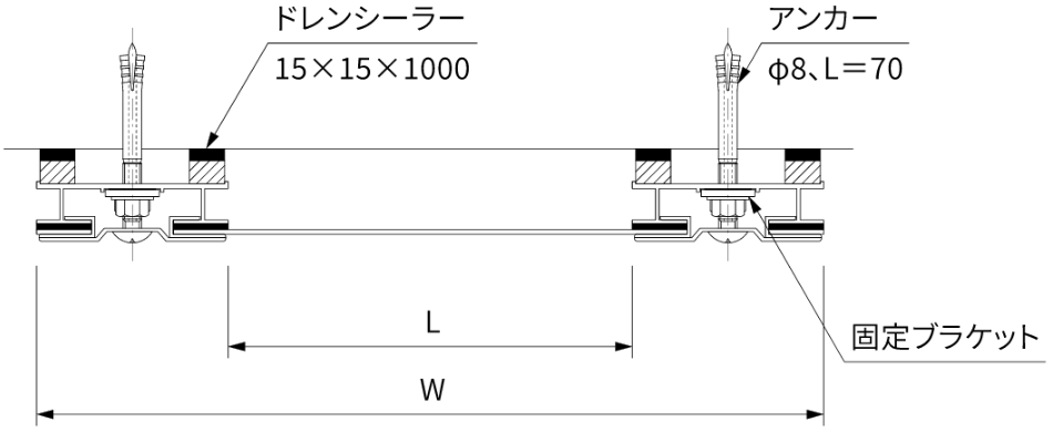| 型式 | 導水幅L(mm) | 総幅W(mm) | 定尺 |