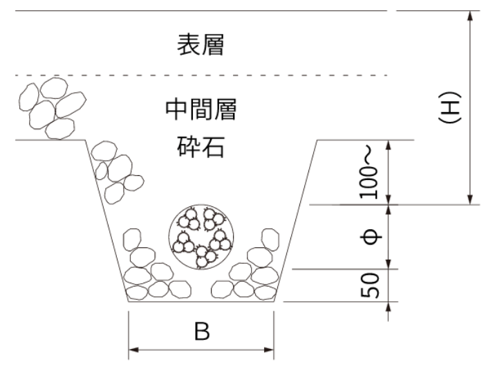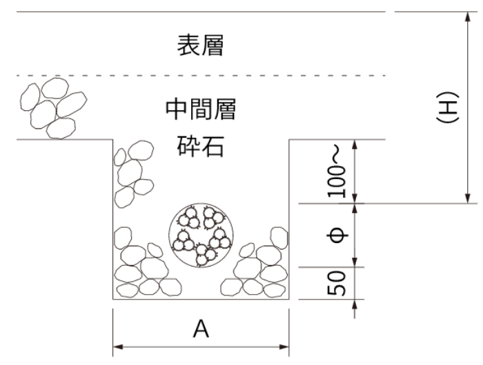 | 道路路肩・路盤 | φ100~150 | 適宜 |