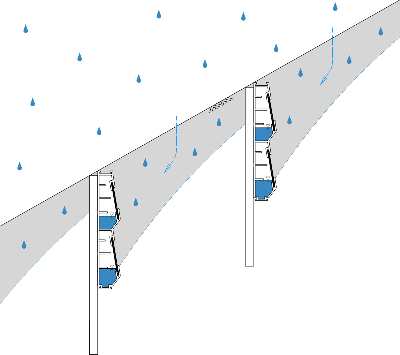 スロープ・ドレンは板柵の土留効果に浸透水・湧水を排出させる効果を加えた製品です。