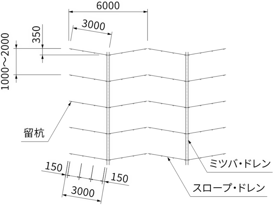 土留め効果と排水性能を両立した法面保護ドレン