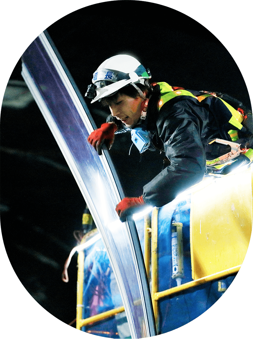 工事職は、トンネルをはじめとするコンクリート構造物の漏水箇所に当社製品を取り付け、“水の困りごと”を根本から解決する仕事です。