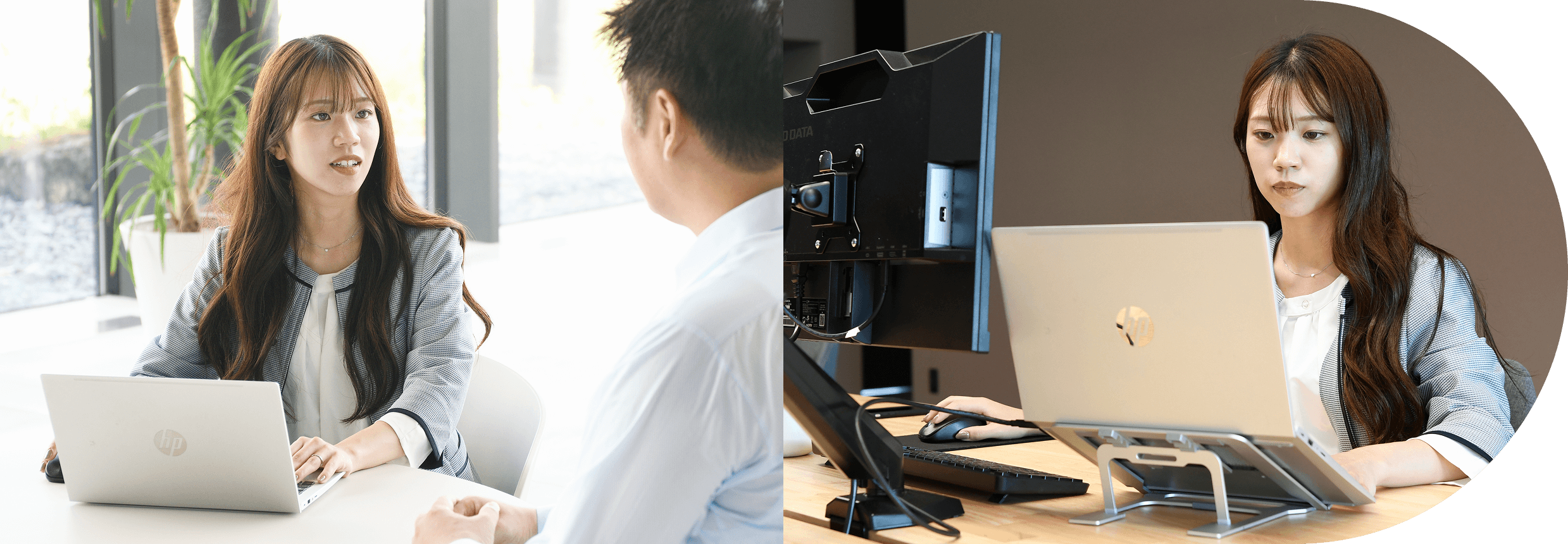 また、社長との距離が近く、文章や資料作成、エクセルやメールの言葉遣いまで直接学べる環境があるのも心強いです。さらに、新社屋になってからは部署を越えて協力しやすくなり、採用活動でも社員みんなが力を貸してくれるのを心強く感じています。一人で抱え込まずに挑戦できる環境があるからこそ、この仕事のやりがいがさらに大きくなっています。