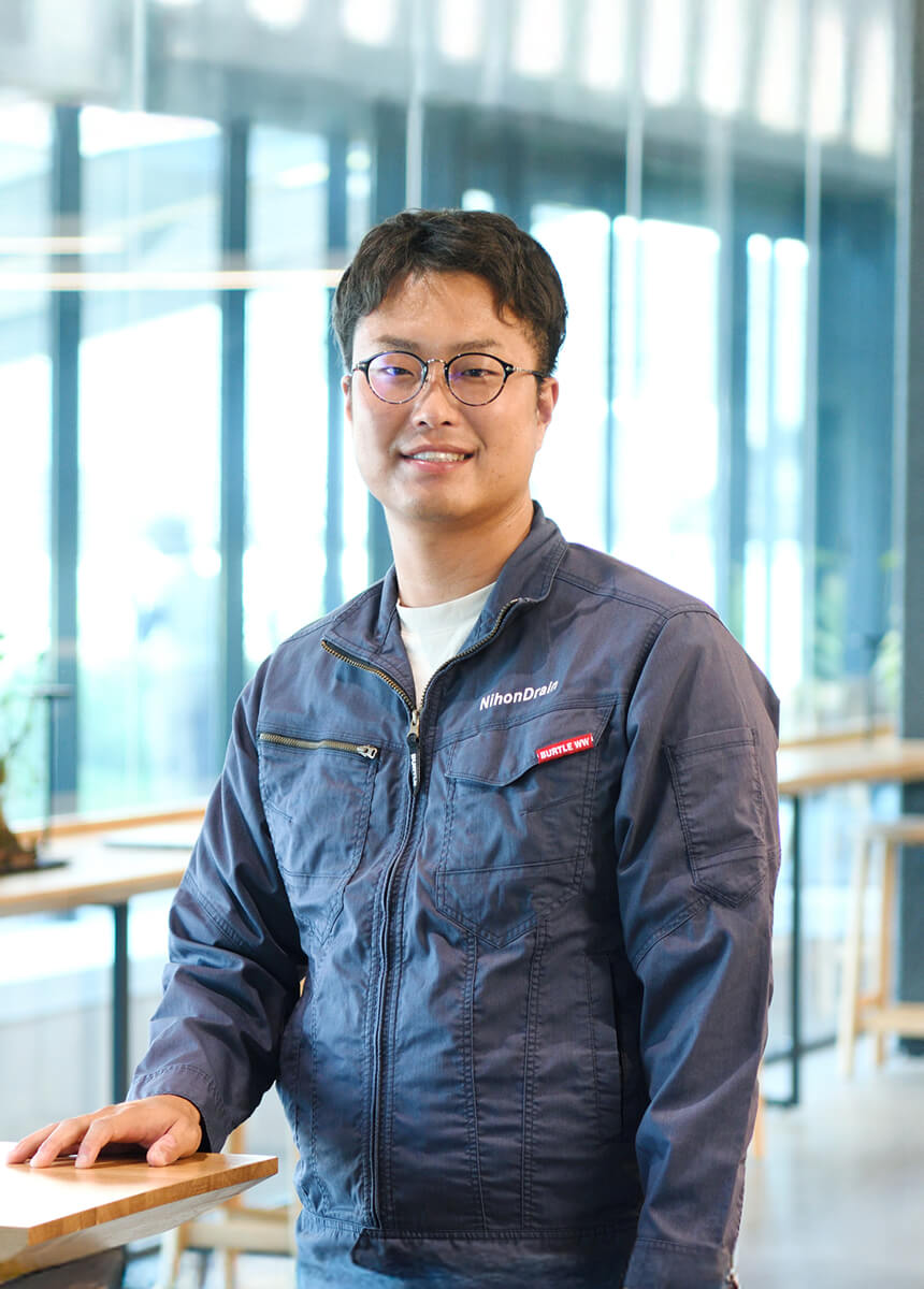 新卒で名古屋で入社しましたが、地元で働きたい気持ちが強くなり、Uターンを決意しました。ハローワークで紹介されたのがニホン・ドレンです。強くおすすめされ、面接も社長と会長でとんとん拍子に進みました。営業職であること、給料や休日など条件が自分に合っていたこともあり、入社を決めました。会社の雰囲気も良かったことも決め手になりました。