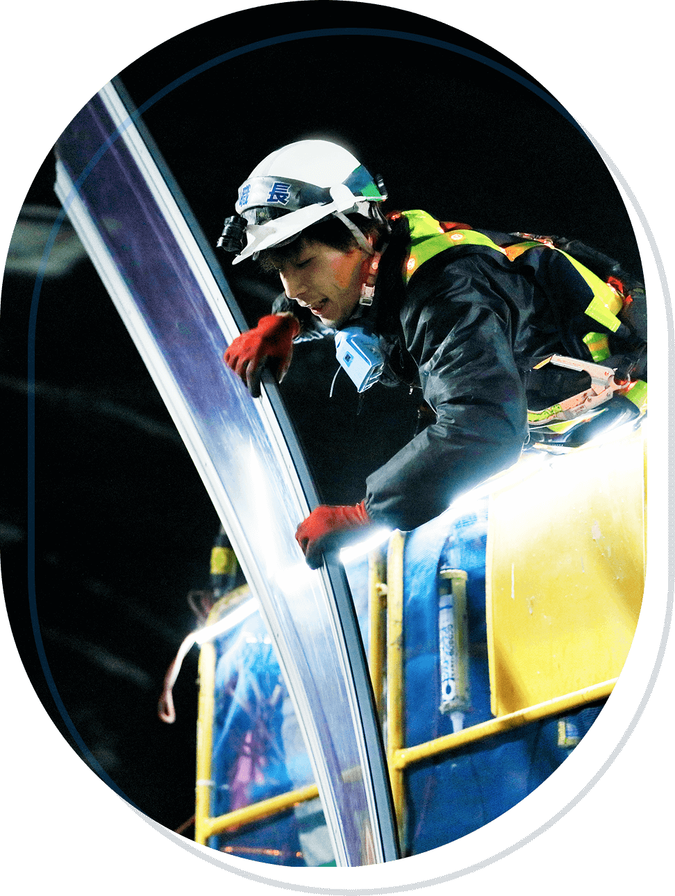 工事職は、トンネルをはじめとするコンクリート構造物の漏水箇所に当社製品を取り付け、“水の困りごと”を根本から解決する仕事です。