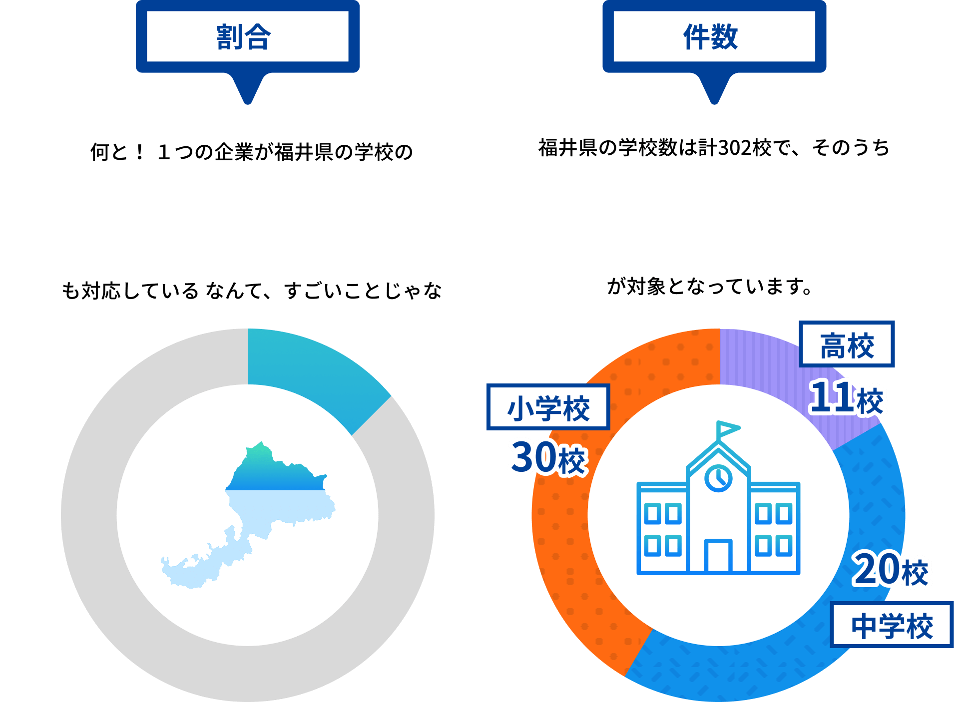 福井県内の学校数と、施工実績数